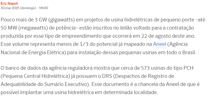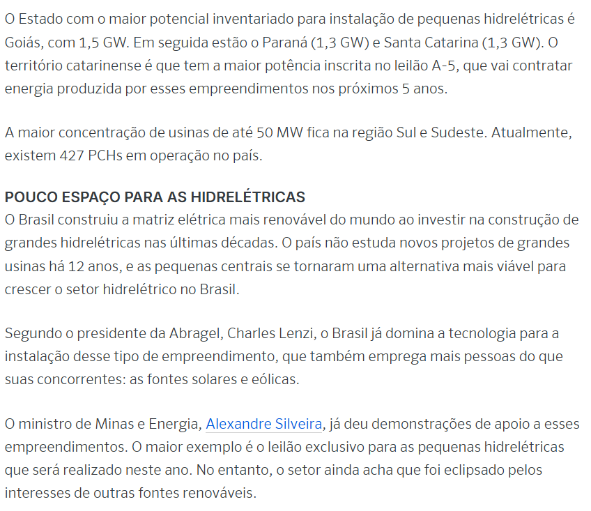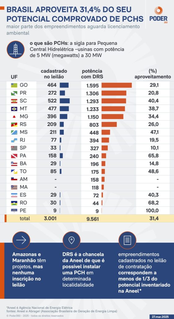 Link: https://www.poder360.com.br/poder-energia/brasil-aproveita-1-3-do-seu-potencial-de-pequenas-hidreletricas/
