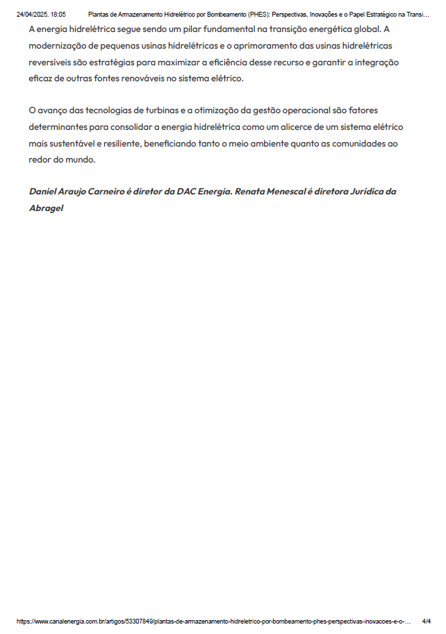 Link: https://www.canalenergia.com.br/artigos/53307849/plantas-de-armazenamento-hidreletrico-por-bombeamento-phes-perspectivas-inovacoes-e-o-papel-estrategico-na-transicao-energetica